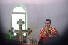 Părintele Cătălin e tot o lumină când descrie cu mâinile gesturi ample despre ridicarea la Cer a lui Iisus pentru mântui rea noastră. Ochii îi râd, transmi ţând li nişte. O altă linişte. Superioară. În semicerc compact, credincioşii adu naţi stau cu mâna întinsă pe muteşte aş tep tând să primească binecuvântarea Celui de Sus. Un al preot ţine o predică, iar auditoriul îl soarbe din priviri. Gesturile nu sunt am ple. Sunt scurte, apă să toa re, convingă toare şi hotărâtoare. Cu fiecare pumn strâns tras spre piept, auzi cuvinte nespuse, iar cu fiecare braţ ferm ridicat ştii că nu eşti singur. În stânga, dascălul priveşte spre cer, în timp ce mâinile îi croiesc în aer înţelesuri divine, iar totul se termină cu pumnul drept strâns cu degetul arătător ridicat, coborând încet şi sprijinindu-se pe palma stângă: "Amin!".